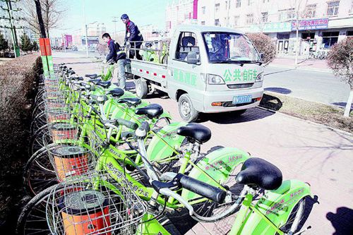 3月27日,黑河市公共自行車管理中心啟動運營系統(tǒng),市區(qū)公共便民自行車正式恢復(fù)運營,市區(qū)各自行車辦卡點同時開始辦理業(yè)務(wù)。據(jù)了解,由于今春天氣回暖早,冰雪融化快,已具備騎行條件,公共自行車恢復(fù)運營比計劃提前10天。圖為工作人員將自行車運至網(wǎng)點。