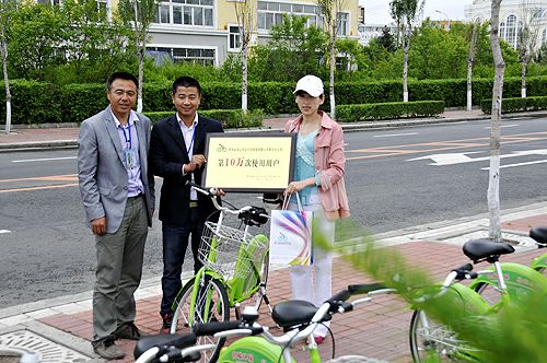 黑河市公共自行車項(xiàng)目自5月27日正式啟動(dòng)以來(lái),市民辦卡踴躍,辦卡量已超過(guò)6000張,使用用戶超過(guò)十萬(wàn)名,我們?yōu)榈?0萬(wàn)名公共自行車使用用戶頒發(fā)榮譽(yù)證書,同時(shí)倡導(dǎo)大家綠色出行,低碳生活,多騎車,少開(kāi)車,愛(ài)護(hù)我們的綠色家園,同時(shí)也請(qǐng)廣大市民愛(ài)護(hù)公共自行車,保護(hù)公共設(shè)施。