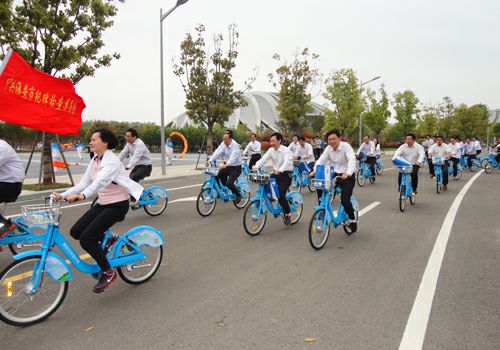 2006年,淮安舉辦了首屆全民健身運(yùn)動(dòng)會(huì),在全省引起較大反響。本次第二屆全民健身運(yùn)動(dòng)會(huì)由市委市政府主辦,市體育局等7部門承辦,設(shè)4個(gè)部28項(xiàng)次比賽,將有一萬(wàn)多人參加此屆運(yùn)動(dòng)會(huì)。為全方位體現(xiàn)“全運(yùn)會(huì)”的特點(diǎn)及宗旨,運(yùn)動(dòng)會(huì)采用了市民大力支持、廣泛參與的自行車環(huán)市行作為開(kāi)幕式方案,真正體現(xiàn)了“全民健身全民參與”和“全民健身你我同行”的主旨。開(kāi)幕式結(jié)束后,淮安市領(lǐng)導(dǎo)與萬(wàn)余名市民共同參加騎自行車環(huán)市行活動(dòng)。市領(lǐng)導(dǎo)們帶頭騎行在隊(duì)伍的最前面,全市近百個(gè)單位共萬(wàn)余人組成113個(gè)方隊(duì),緊跟在市領(lǐng)導(dǎo)方隊(duì)后騎行。自行車隊(duì)伍所到之處一片歡騰,整齊干練的著裝,精神抖擻的風(fēng)貌,意氣風(fēng)發(fā)的笑臉……祥和而熱鬧。而公共自行車的加入更是為活動(dòng)增添了一道亮麗的風(fēng)景線,藍(lán)色的倩影在壯大的隊(duì)伍中顯得格外亮眼。引來(lái)了許多群眾駐足觀看,大家用掌聲和歡呼為隊(duì)伍加油助威。