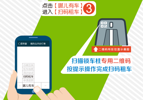 智能手機(jī)用戶點擊支付寶app,在“服務(wù)窗”內(nèi)搜索添加【城市公共自行車】,并進(jìn)入【城市公共自行車】頁面;點擊“哪兒有車”中選擇“掃碼租車”;掃描鎖車柱上的掃碼租車專用二維碼,按提示操作即可輕松租車,流程簡單便捷。