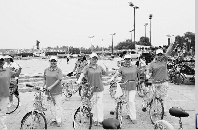圖為參加自行車健身賽的轄區(qū)居民準(zhǔn)備出發(fā)。本報(bào)記者吳珊攝