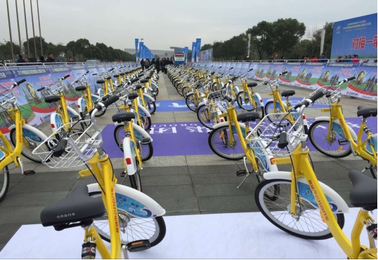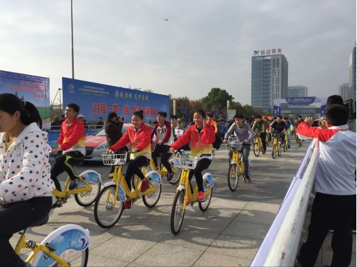 比賽正式開始前,鹽城公共自行車管理中心提供了300多輛城市公共自行車,在工作人員的努力下排放整齊,為賽前的綠色騎行做好準(zhǔn)備。