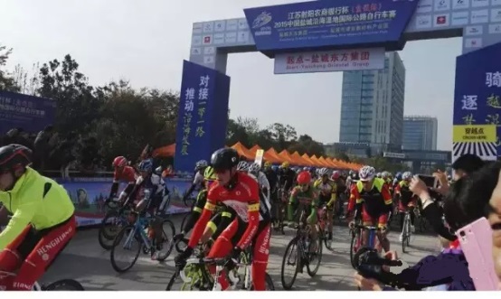 11月10日上午,以“對接‘一帶一路’推動沿海發(fā)展”為主題的2015中國鹽城沿海濕地國際公路自行車賽開幕。