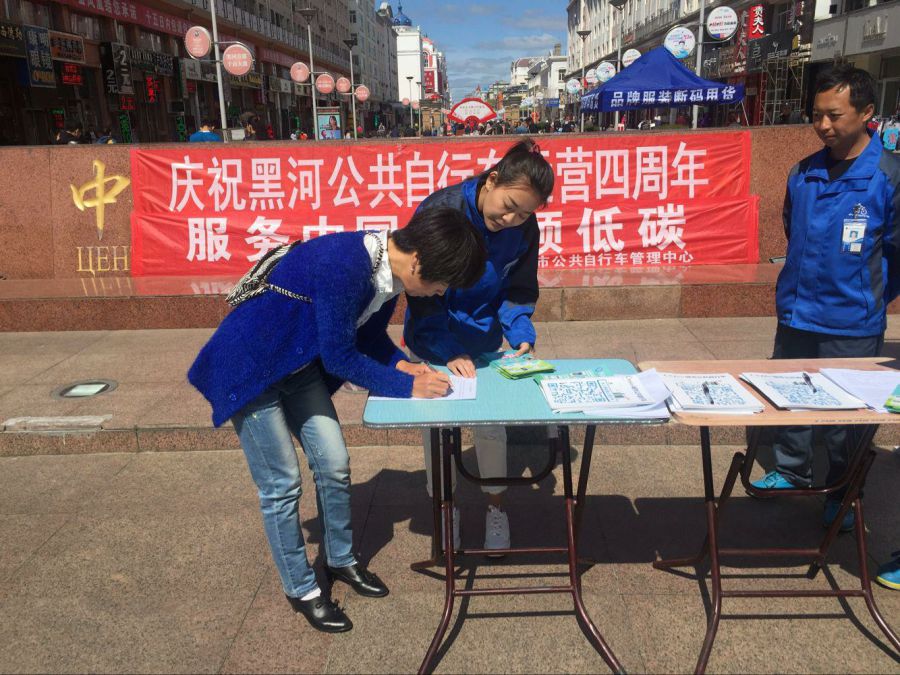 黑河公共自行車(chē)從2012年運(yùn)營(yíng)以來(lái),經(jīng)過(guò)全體工作人員的不斷努力和改進(jìn),以及監(jiān)管單位的大力支持,得到了黑河市民的信任和好評(píng),但是我們的工作還有許多待改進(jìn)的地方,這次活動(dòng)也展開(kāi)了回訪活動(dòng),衷心的希望得到黑河公共自行車(chē)客戶(hù)給我們提寶貴的建議和意見(jiàn)。我們將繼續(xù)已飽滿(mǎn)的熱情和激情秉承永安的宗旨“服務(wù)中國(guó)、引領(lǐng)低碳”。