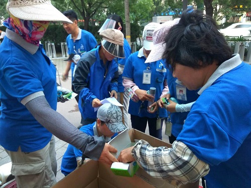 公司為同志們發(fā)放了毛巾及風油精等夏季常用物品,送到在站點工作的同志們手里。