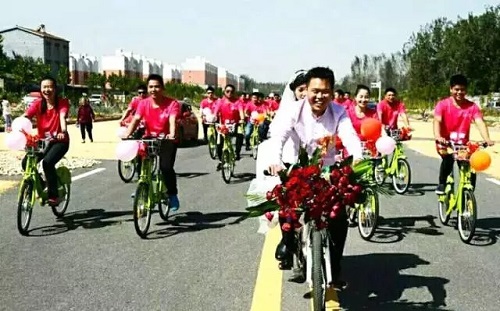 自從有了公共自行車,夏邑市民的生活也變得豐富起來。各式各樣的騎行活動就這樣開展起來了……2015年10月1日,夏邑縣內(nèi)第一例環(huán)保自行車婚禮在路人的期待與祝福聲中舉行,迎親方式低碳環(huán)保,給這個婚禮帶來了別樣的意義。而后夏邑分公司舉行的各類騎行活動也得到了熱烈的響應。