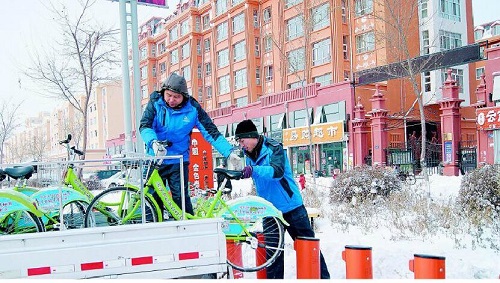 由于氣溫急劇下降,降溫降雪導(dǎo)致路面結(jié)冰,為確保使用公共自行車的市民人身安全,市公共自行車管理中心于11月14日停止運(yùn)營市區(qū)公共自行車,開始陸續(xù)回收市區(qū)90處站點(diǎn)的2530輛公共自行車,工作人員將進(jìn)行檢修和維護(hù),以便明年春季繼續(xù)投入使用。據(jù)統(tǒng)計(jì),公共自行車自2012年投入使用以來,市民共借還公共自行車輛達(dá)3160萬次,其中今年借還700萬次。