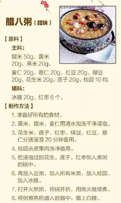其實(shí),不同地方的臘八粥口味也是不同的,下面,小編為大家分別介紹一下,甜版臘八粥和咸版臘八粥是怎么做的。