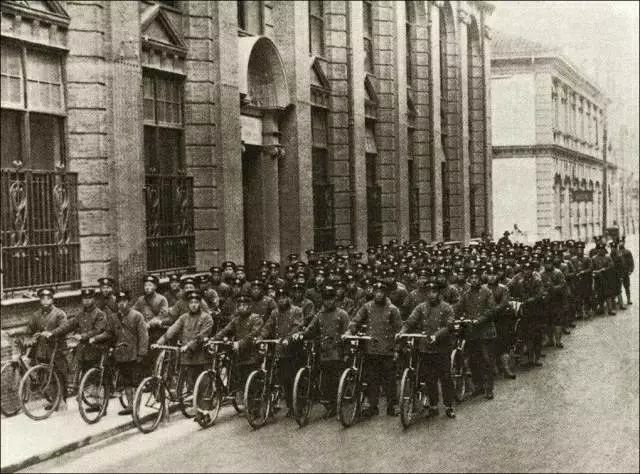 民國9年(1920年),上海。郵政局壯觀的自行車郵遞員隊伍。