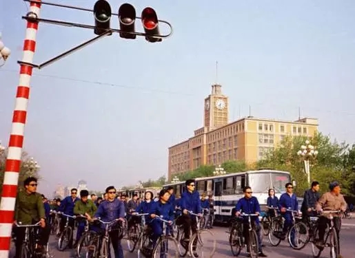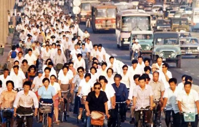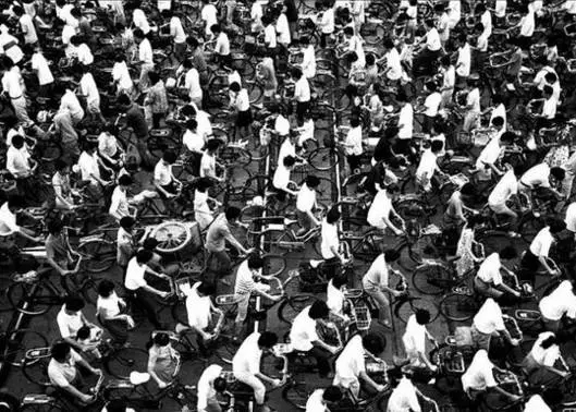 1981年,北京。北京市民騎著黑色或灰色的自行車趕去上班。當時每三個人中,只有一人能幸運地擁有一輛自行車。