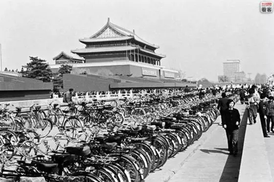 1984年,北京天安門廣場停車場。80年代中國“自行車王國”稱號聞名世界。在2002年當喬治.w.布什總統(tǒng)訪華時,他被獲贈一輛自行車。