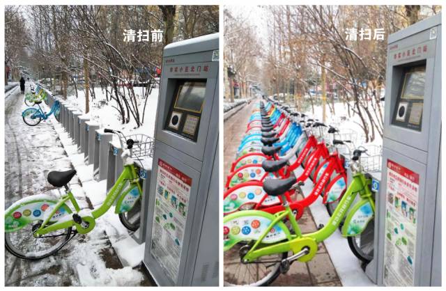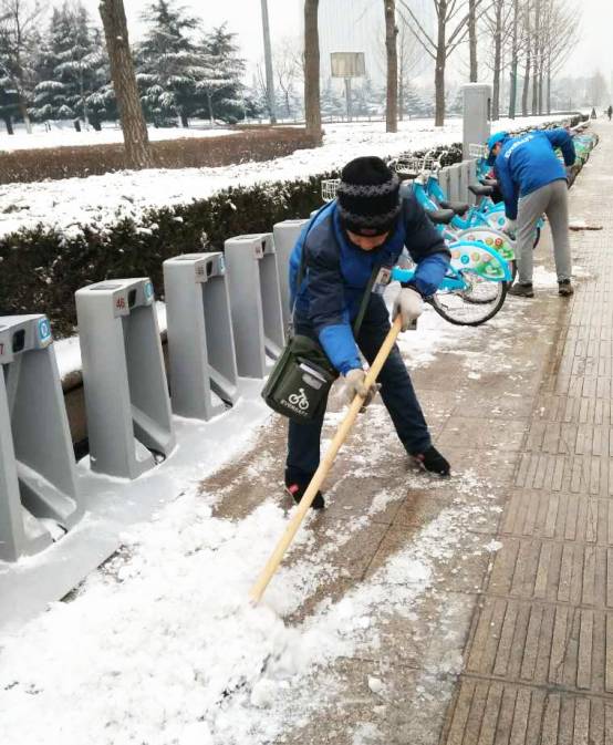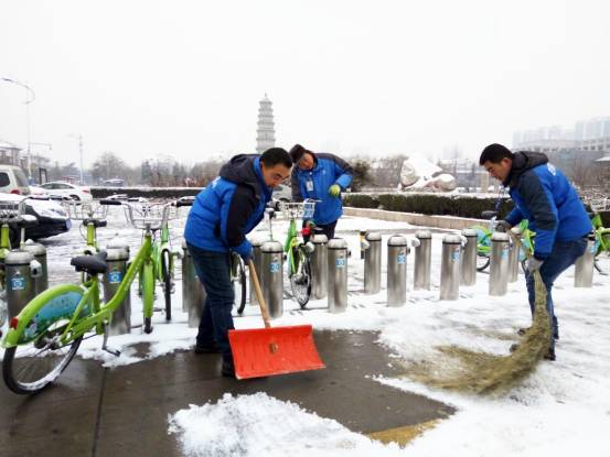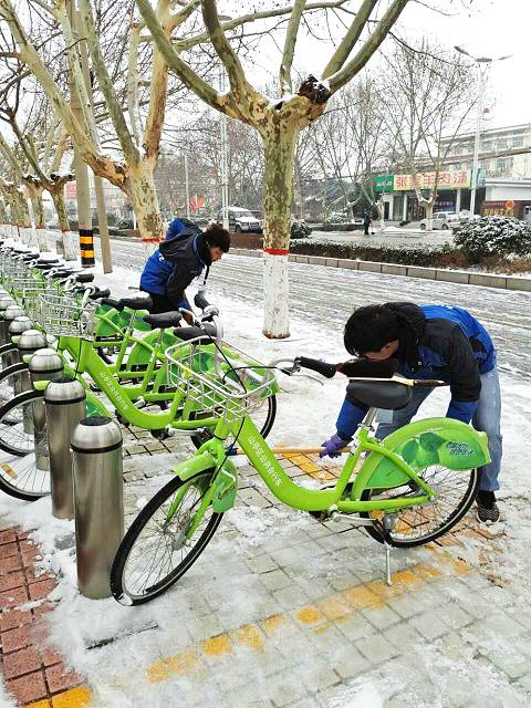 在白雪覆蓋的街頭可以看到,工作人員到達站點后快速清掃衛(wèi)生,拿出抹布開始擦拭站點設(shè)備、自行車以及清掃周邊道路的積雪;檢查服務(wù)點內(nèi)的公共自行車是否有故障;幫市民解決各種問題。盡管天氣寒冷、路面結(jié)冰、雙手凍僵,但工作人員依然客服困難穿梭在城區(qū)各個公共自行車站點,用微笑和汗水溫暖著過往行人心,為市民出行安全提供服務(wù)和保障。