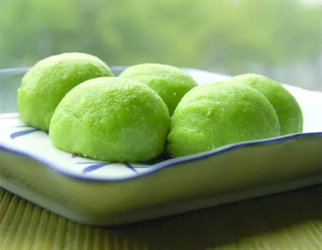 青團,又叫艾團,是一種用草頭汁做成的綠色糕團。青團碧青油綠,糯韌綿軟,甘甜細膩,清香爽口。青團是流行于江浙一帶的清明節(jié)節(jié)日食品,用青艾的汁與糯米粉一起調和,將豆沙餡、芝麻餡等餡料包入,做成一個個如小孩子拳頭大小的綠色的團子。家長帶著孩子出外踏青時,還可以帶上一些青團作為小吃。